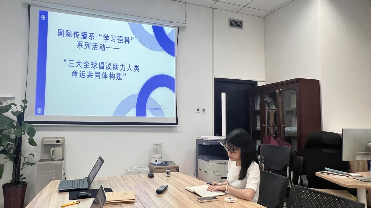 82日下午,国际传播系组织召开了第学习强科业务研讨活动,本次活动由宋欢迎副教授主持。刘彦副教授领学了三大全球倡议 助力人类命运共同体建构,廖政贸副教授对话分享,国际传播系全体师生参与研讨。