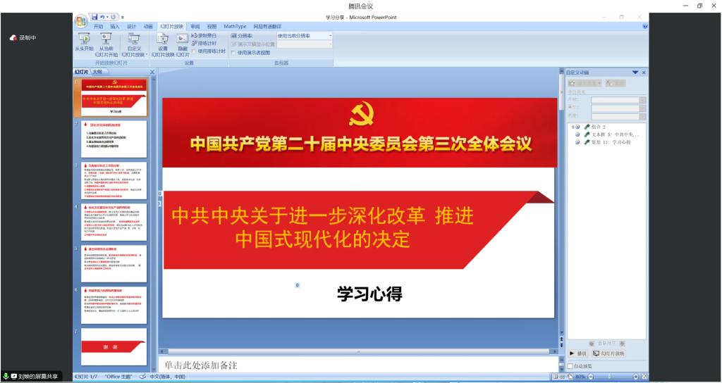 8月23日下午,新媒体系在线组织开展第五次“学习强科”业务研讨活动,本次活动由系党支部书记牛耀红主持。沈霄副教授领学了《中共中央关于进一步全面深化改革、推进中国式现代化的决定》(以下简称《决定》)的相关内容,刘焕副教授就《决定》中关于“深化文化体制机制改革”的部分进行了分享交流。