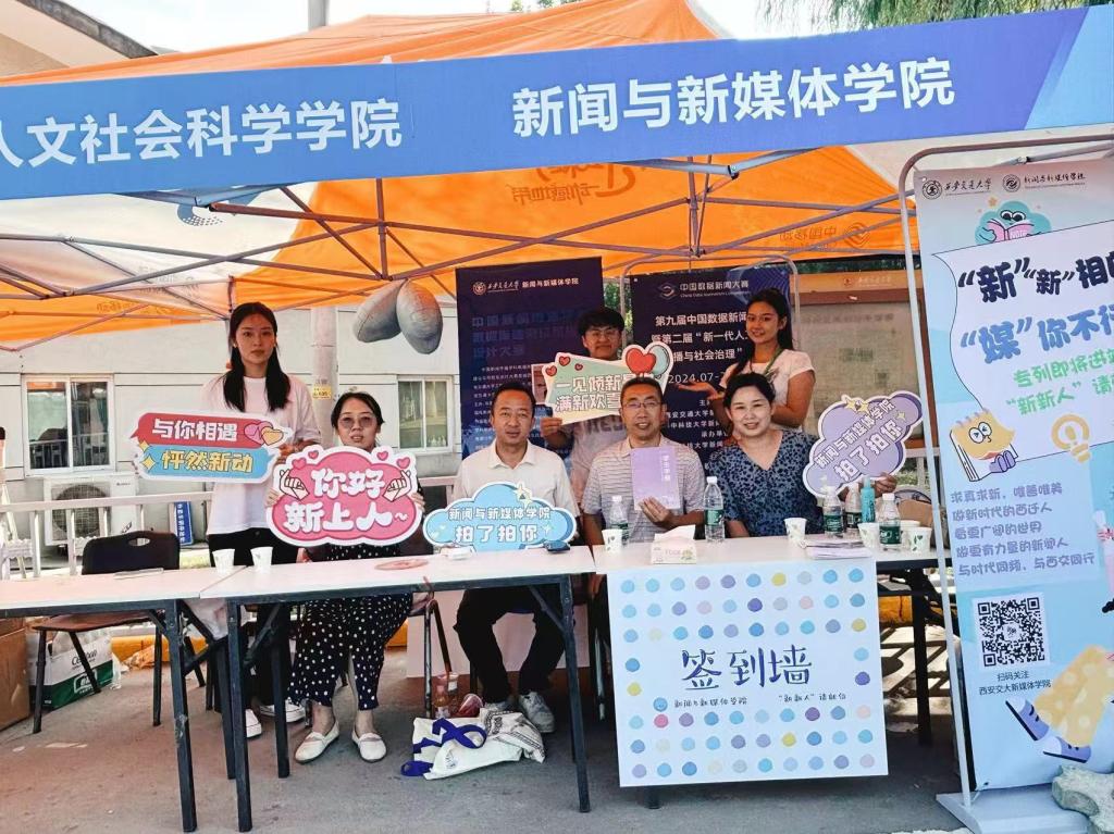 党委书记马忠、院长汪文斌、副书记吴锋、副院长张宏邦、副院长孙鹤立、院长助理、团委书记范晓莹、新生班主任牛耀红、邝岩、辅导员李媛媛前往兴庆校区南门迎新一线,与志愿者共同迎接新生到来,与新生和家长亲切交流并合影留念。
