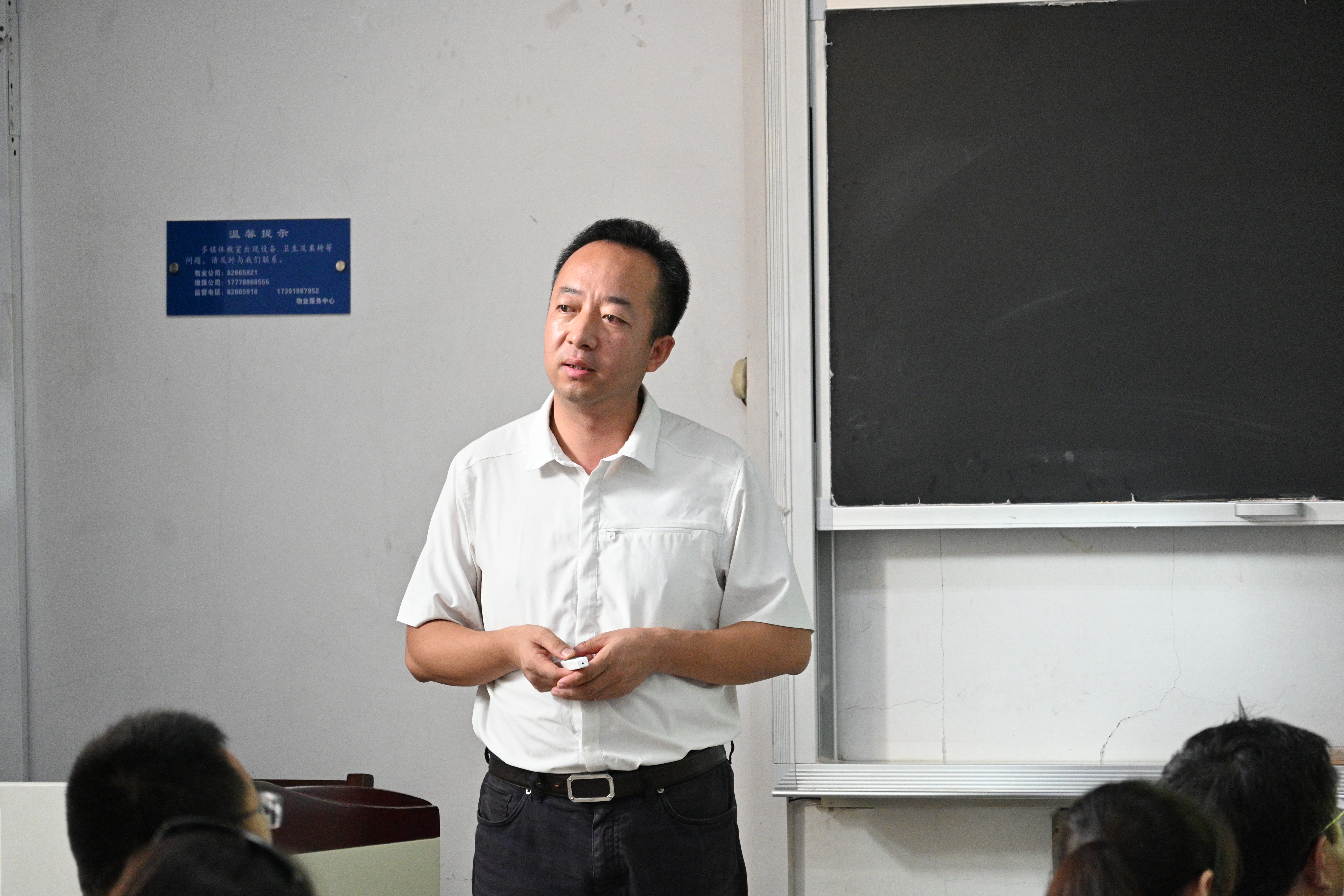 新生班主任代表牛耀红副教授发言,他结合教育工作实际进行经验分享,表示未来四年将承担好教育引导、管理服务的重要职责,做好新生成长的引路人。