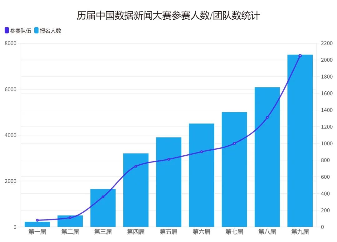 历届中国数据新闻大赛参赛人数/团队数统计