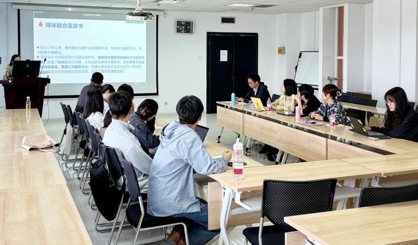 讨论环节中,与会师生代表结合所学内容积极开展研讨。张媛教授从整体框架谈建设全媒体传播体系的具体举措,强调主流媒体在组织架构、管理流程、运营模式、话语体系、媒体形态、平台技术等方面进行全方位的改革,以适应全媒体时代的生产传播需求。黄蓉副教授谈及当前主流媒体系统性变革面临的现状与困境,她认为,主流媒体系统性变革的主要问题在于媒体人不能再做加法,要注重媒介融合与社会互通互融,使得媒体真正为社会赋能,要把眼光放在媒体与各个行业、社会发展互通进行思考。当前新媒体时代下,真正好的内容依旧很匮乏,而媒体人要打造真正精品内容,实践要有协同观,要将系统论落到实处。赫中华副教授从自身专业领域出发,提出主流媒体系统性变革可以以用户心理为抓手:一是增强传播互动性,注重用户体验,适应新媒体即时传播、海量传播新形势,让受众在媒体平台上既能看事、也能办事,以构建开放型媒体。二是提升传播“共情力”,要求主流媒体把握受众情绪价值,从网民的关切点找选题,将官方话语转变为民间话语,强化对热点问题的引导,真正打通主流媒体传播的堵点。叶妮副教授表示,推进主流媒体系统性变革,不能只关注主流媒体的“概念化”变革,还要打通业界与学界的观念壁垒、割裂机制。