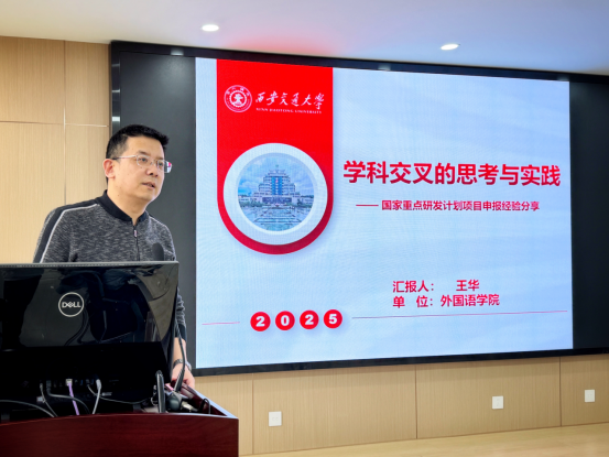 外国语学院副院长王华教授分享项目申报经验,新媒体系支部书记牛耀红副教授主持。
