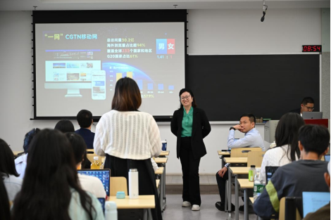 互动环节,两位专家结合前沿案例就同学提出的问题作针对性解答,分析了“国际传播中如何借力‘他者’叙事”和“目标国资源如何本土化运用”两大实践命题。
