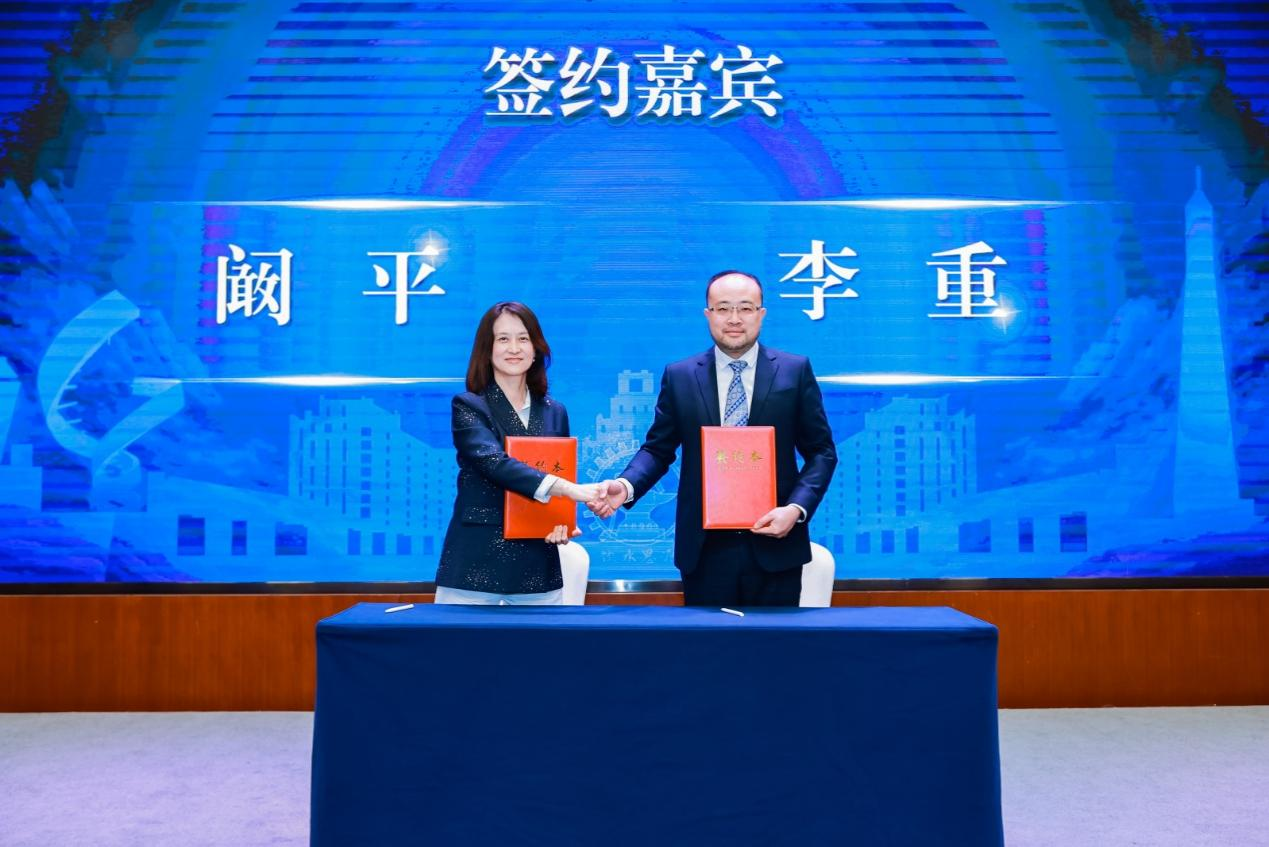 阚平,西安交大出版社党委书记、社长李重进行“新大众文艺系列丛书”出版签约。