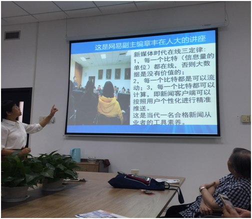 全体老师和教发中心胡奈赛教授汇报了她在清华大学新闻学院跟随彭兰老师学习《新媒体新闻实务》这门课程的心得体会。