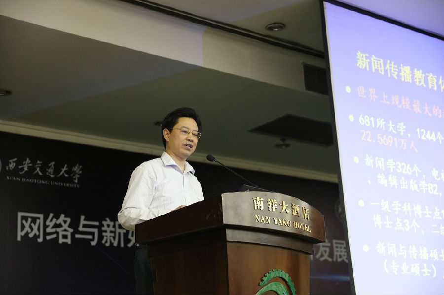 6月3日上午,“网络与新媒体专业建设与学科发展”高峰论坛在西安召开。重庆大学新闻学院院长、网络传播史研究委员会会长董天策教授做了《守正与创新,网络与新媒体时代新闻传播教育的变革之道》的主旨演讲,提出变革与创新是新闻传播教育的出路。