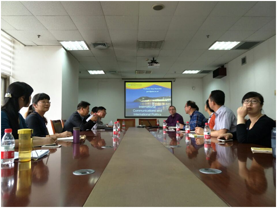 加里·罗恩斯利教授在国际传播、公共外交、国际战略与政治沟通等领域均有深厚的国际影响力。他首先介绍了英国亚伯大学优越的地理位置、学习环境与浓厚的学术氛围。接着,加里教授通过自己的成长经历,讨论了媒介的变迁如何影响个人与社会的发展。本次讲座的核心议题是软实力的国际传播及政府外交政策。加里教授通过描述美国、英国、中国以及穆斯林国家的文化传播,阐释了自己关于软实力与政府外交政策、对外传播影响力等问题的观点。最后,加里教授就宣传与传播的异同、政府与媒体的关系等问题与在座师生进行了坦诚深入的互动讨论。