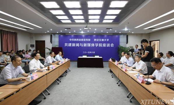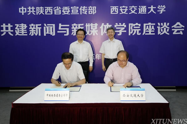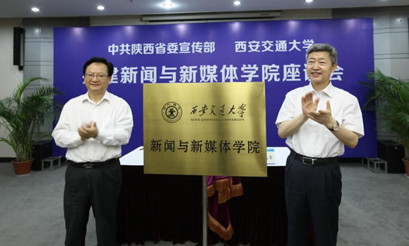 ”,是陕西省委宣传部、西安交大深入贯彻落实党的十八大、十八届三中、四中全会精神和全国宣传思想工作会议精神,落实中宣部、教育部《关于地方党委宣传部与高等学校联合共建新闻学院的意见》的重要举措,也是政府与高校强强联手,转变新闻传播教育模式、遵循新闻传播规律、强化宣传阵地的关键之举。