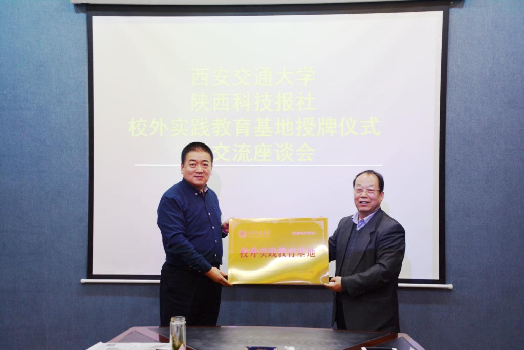 院长李明德教授为陕西科技报社授予“校外实践教育基地”。李明德在致辞中表示,此次授牌,西安交大黑料网