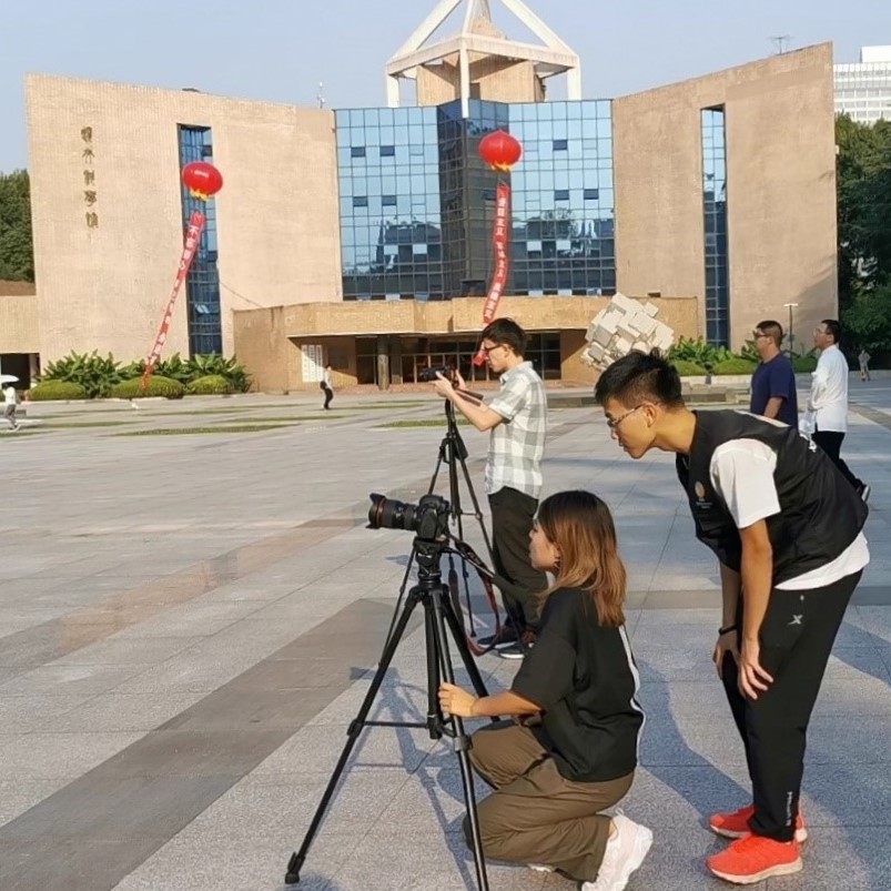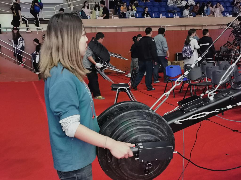 她从通讯社宣传部的小干事做起,尝试着撰写新闻稿件,进行推送排版和公众号运营,一点点地接触新媒体,再到逐渐深入了解新闻摄影与后期、视频制作剪辑、晚会直播等复杂的操作。她跟着社团的前辈在一场场拍摄和直播中学习使用设备、视频剪辑、写策划、写脚本、推拉流……背着几公斤重的相机包和三脚架在炎炎烈日下拍摄。晚会的排练和正式直播经常要连续拍摄三四个小时,拍摄好的视频素材往往要剪辑到凌晨……在投入与学习的同时,她的那份热爱也逐渐升华。