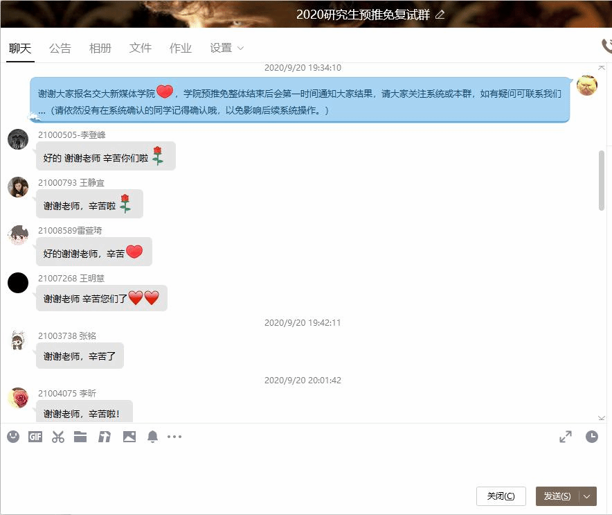 复试前,学院成立预推免群,通知复试的相关程序与规则,及时回答学生问题,化解考生疑虑,保障复试工作顺利开展。