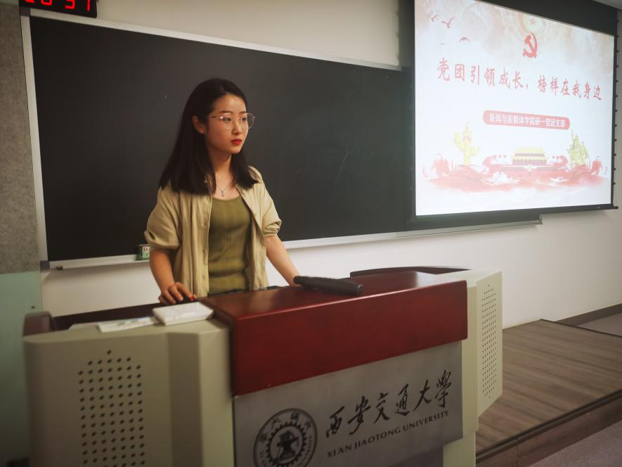 (硕0192班班长李肖燕做“五四精神传承有我”主题汇报)