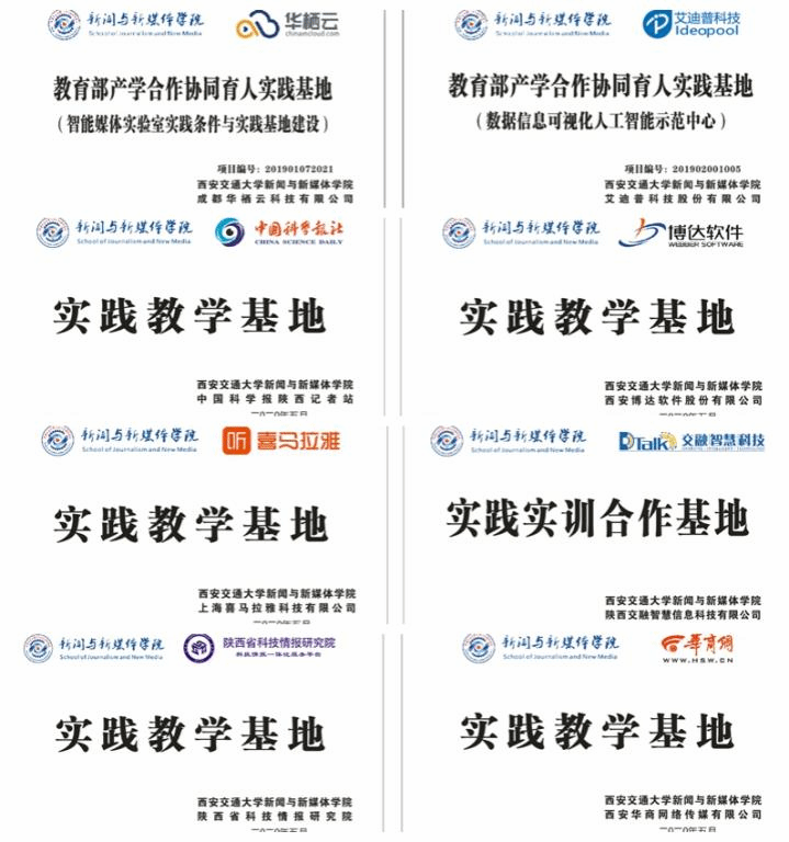 与政府机构、媒体机构和新媒体企业共建三类实习实践基地。与陕西省委宣传部、陕西省委网信办、延安新闻纪念馆、延安市互联网信息办公室共建教育实践基地;与人民日报社陕西分社、中国科学报社、中国教育在线、陕西广电融媒体集团、西部网、华商网、腾讯·大秦网媒体实习实践基地;与清博大数据科技有限公司、美林数据技术股份有限公司、上海喜马拉雅科技有限公司、陕西省科技情报研究院等建立实践实训基地。学生在三类实习实践基地,通过“干中学”“学中干”逐步掌握了全媒体人才所需的“十八般”技能。