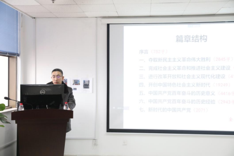 新闻系党支部组织委员徐婧副教授谈到,要重新认识和理解对党史、党的重要文件、决议的学习方式方法。从文本出发,既要把握文本的宏观结构和历史背景,也要考察文本细节中所体现的细密逻辑;重新认识历史书写的意义,避免历史虚无主义,并留意任何教学科研工作都不能脱离历史语境孤立存在;通过回顾历史,总结成功的经验教训,做好未来的展望和期待,即“勿忘昨天的苦难辉煌、无愧今天的使命担当、不负明天的伟大梦想”。