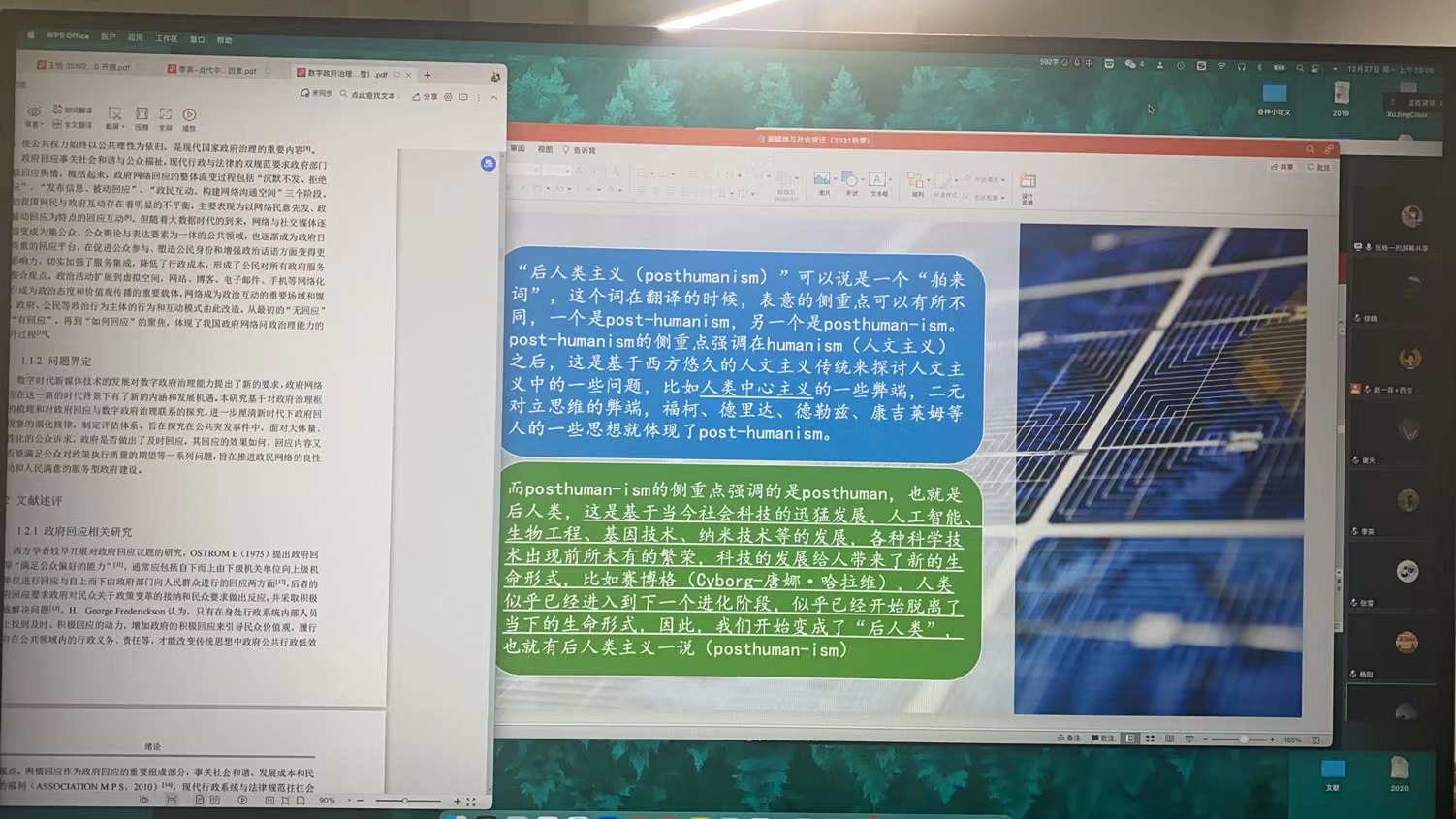 硕1194班的肖遥同学表示,西安疫情让师生们再次体会到线上上课的滋味。有过上段线下授课转线上的经验,此次人们都更快地适应了教学方式的转变。虽则地点有变,交流与连接不变,知识的传递不变,老师们用心讲授答疑,学生们积极参与讨论,线上课堂依旧充满活力。