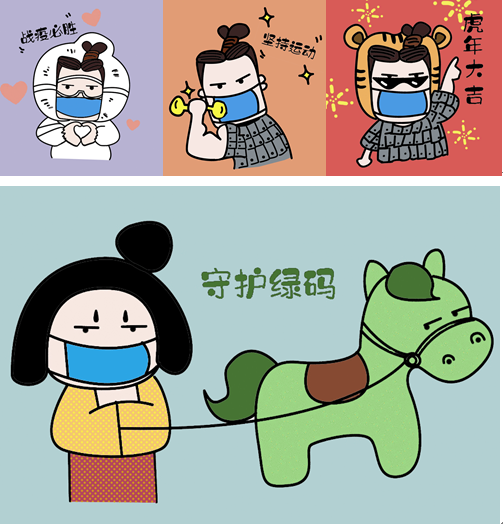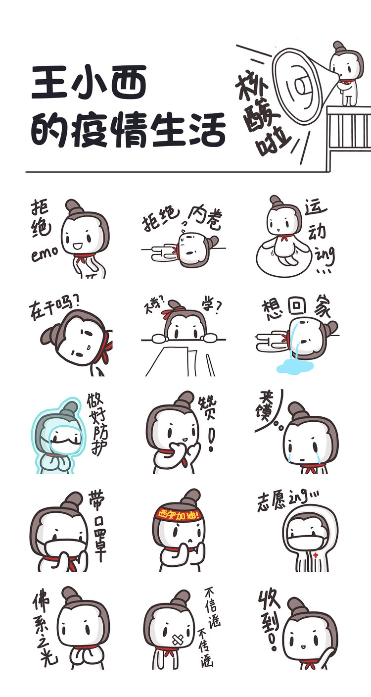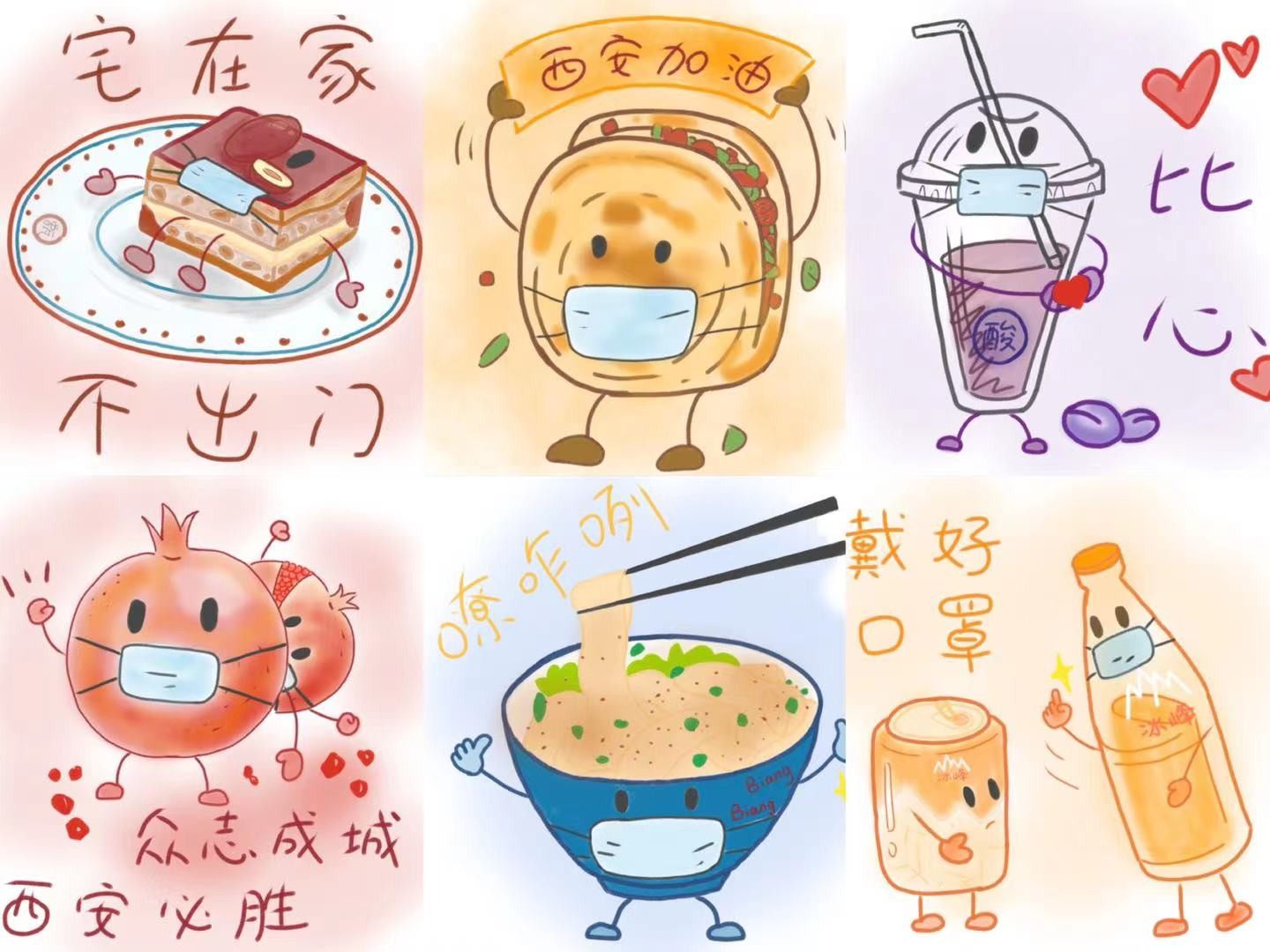 经过前期稿件征集,学院共收到三十余组完整作品,作品风格各异,形式活泼。有的结合西安本地美食特色,将肉夹馍、冰峰等小吃搬上抗疫舞台;有的手绘兵马俑等地方特色人物,精巧别致对隔离生活丰富展示;有的用志愿“大白”进行主体创作,讴歌奋斗在一线的医务工作者。