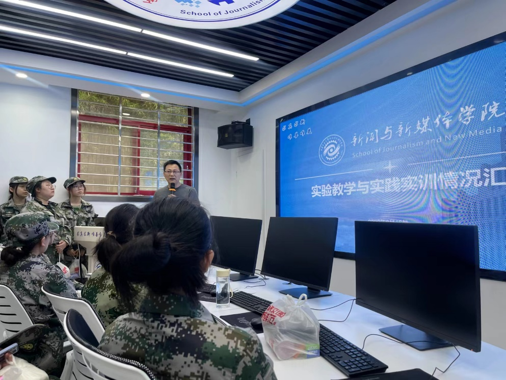 操场慰问结束后,同学们参观了学院的智能媒体实验室,张收鹏老师为同学们介绍了学院的实验教学和实践实训情况,令同学们对未来在实践学习中要接触到的设备及软件有了初步的了解。
