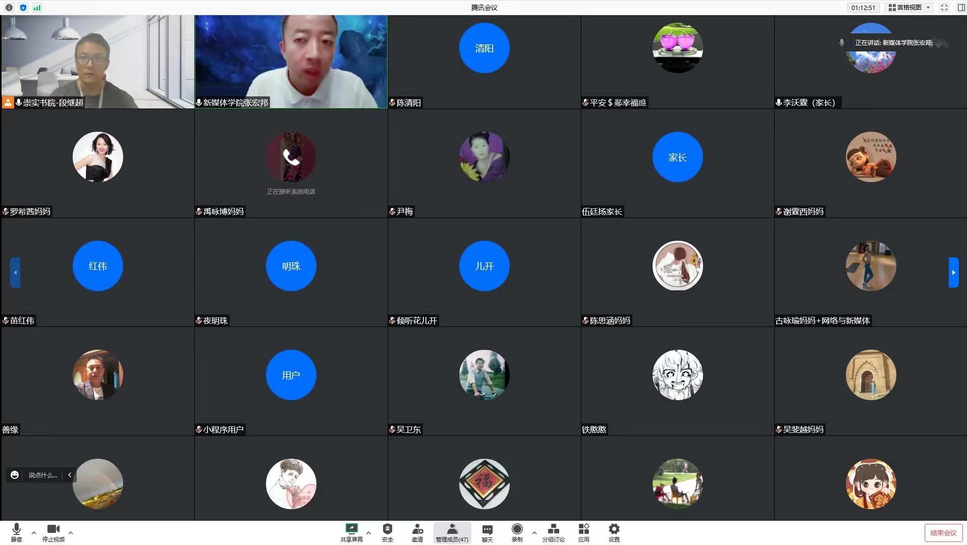 晚间,书院组织新生家长线上座谈会,学院张宏邦副院长、班主任张铁云老师一同参会,张宏邦副院长从学业发展、课程体系、学科建设等方面介绍了学院的情况。