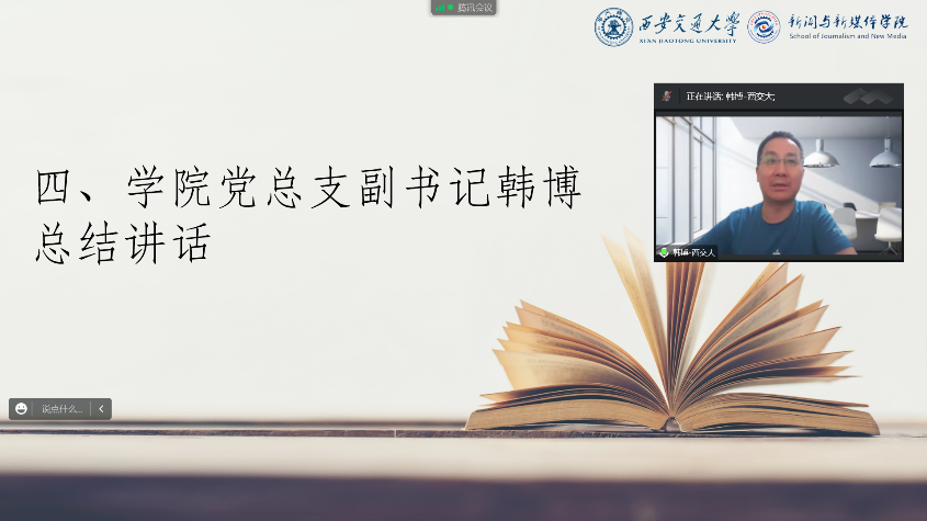 韩博针对同学们未来的研究生生活给出了建议。首先是与学院的关系,韩博提出,同学们要尽快融入环境,多多参与校园生活的同时提升身为学院一员的归属感、荣誉感。其次是与导师的关系,韩博就如何应对压力等问题鼓励大家多与导师沟通、擅于疏解压力,在完成课业的同时做好个人的学业规划。最后是与同门、同学的关系,希望同学们之间尊重彼此、互帮互助,营造和谐、健康的院系环境。