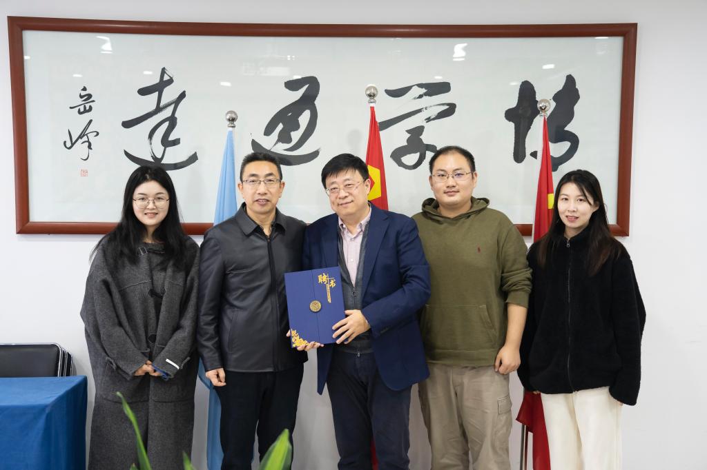 新闻与传播专业研究生协同育人合作导师聘书”。马忠院长指出,要进一步深化院企合作,从共建智库、联合人才培养、组建数字实验室等方面深化合作,共同探索教育数字化建设的校企合作新模式。