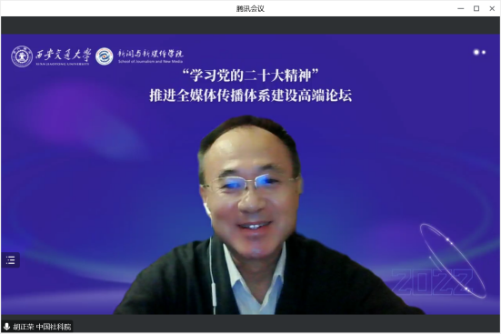 中国社会科学院新闻与传播研究所所长胡正荣教授在致辞中强调:建设全媒体传播体系既是历史使命、历史任务,更是历史必然。党的二十大报告擘画出全媒体传播体系建设的发展之路,其核心是要从文化和国家安全两个层面服务于中国式现代化,服务于国家治理体系和治理能力现代化。