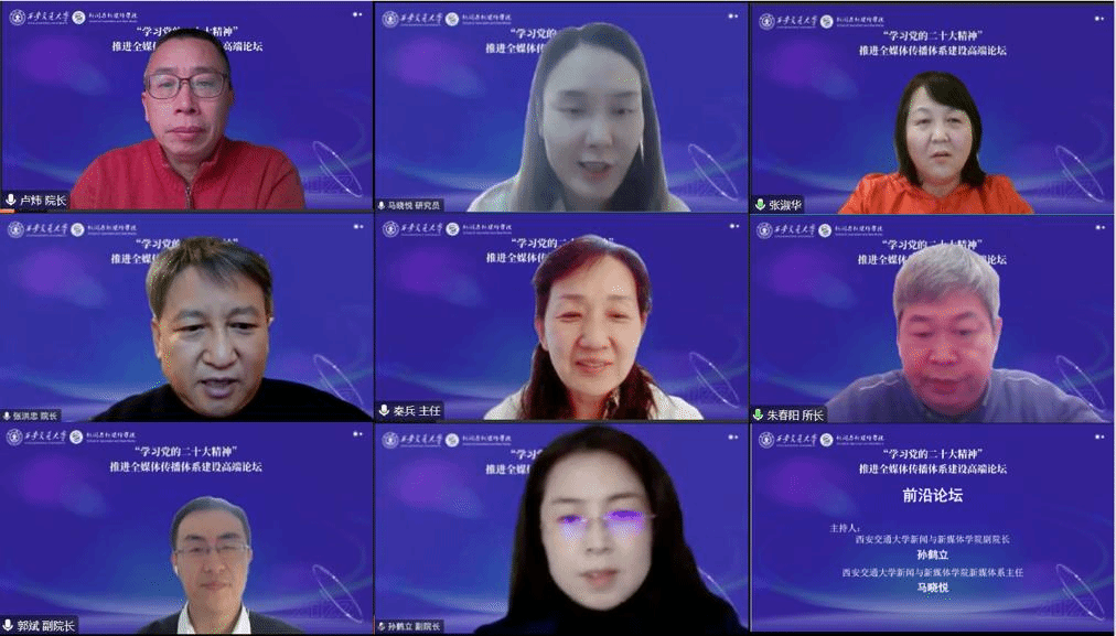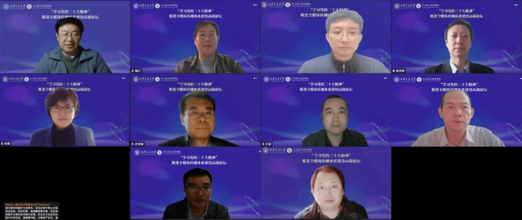 主办的“学习党的二十大精神,推进全媒体传播体系建设高端论坛”成功举行。来自全国60多所重点新闻传播学院的百余名知名学者、龙头企业和知名媒体代表相聚云端,围绕“加强全媒体传播体系建设”发表真知灼见,旨在凸显新时代媒体人使命担当,更好推进新型主流媒体建设,探讨全媒体传播人才培养模式创新,助力新闻传播学科建设高质量发展。