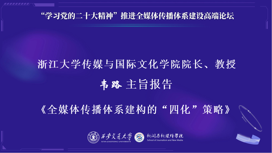 浙江大学传媒与国际文化学院院长韦路教授围绕“全媒体传播体系建构的四化创新战略”主题发表观点。韦路教授结合团队研究成果指出,优化内容策略、深化融合叙事、活化网络互动、强化主体协同是着力建构舆论引导共同体,落实全媒体传播体系建设的关键所在。