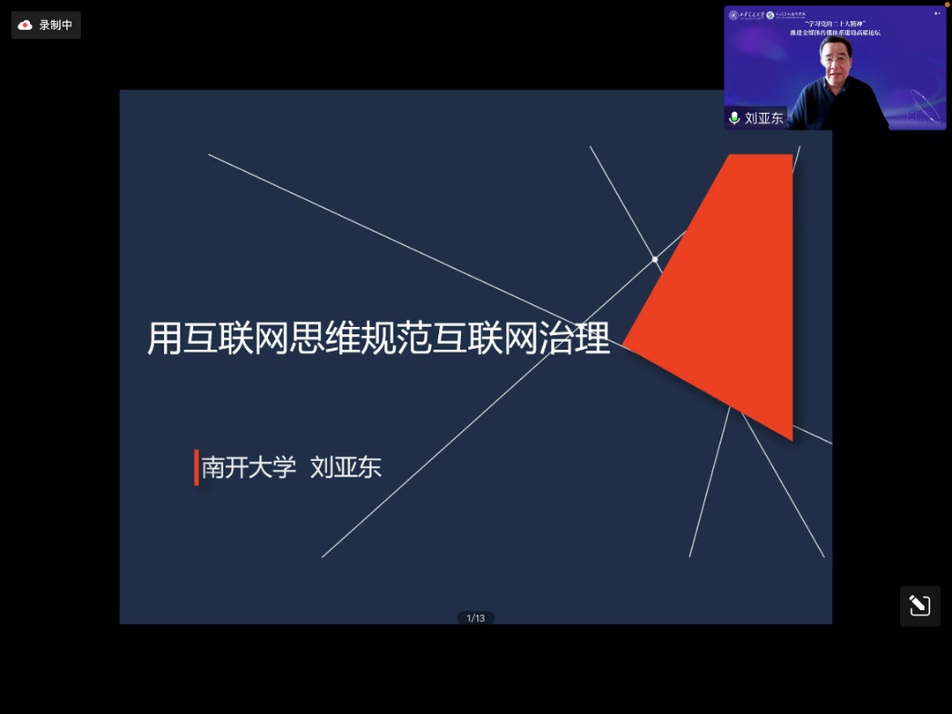南开大学新闻传播学院院长刘亚东教授以“用互联网思维规范互联网治理”为题进行分享。围绕网络虚假新闻的治理现状、局部真实与整体真实的逻辑关系、新闻要用事实说话阐述观点后,他指出“提高互联网治理系统化、社会化、科学化水平离不开提高公众媒介素养”。