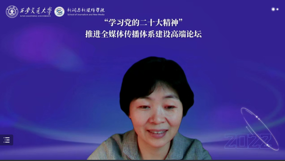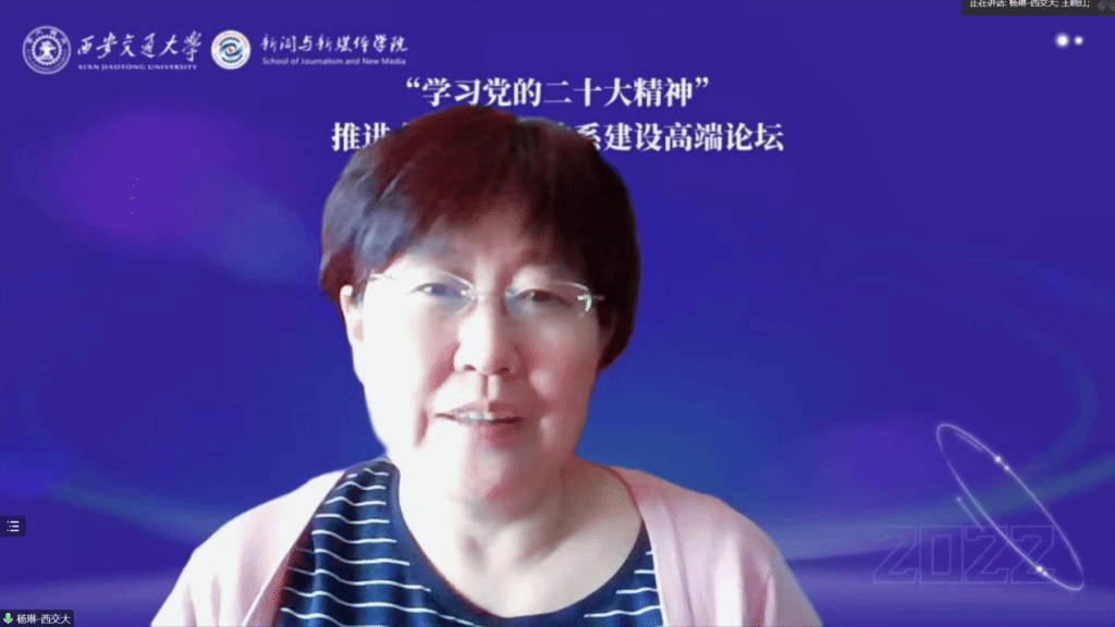 杨琳教授主持。她提到,以习近平同志为核心的党中央对主流媒体提出了新的要求,也为主流媒体未来的发展擘画了整体蓝图、指明了进路方向。未来,主流媒体应当以党的二十大精神为根本遵循,以建设中国特色的全媒体传播体系为根本任务,从内容、技术、管理三个层面深化媒体融合变革。她认为,本次会议的对推进全媒体体系建设、加强我国主流意识形态建设工作具有重要意义,也希望各位学者能畅所欲言,为全媒体建设工作提出宝贵的指导意见。