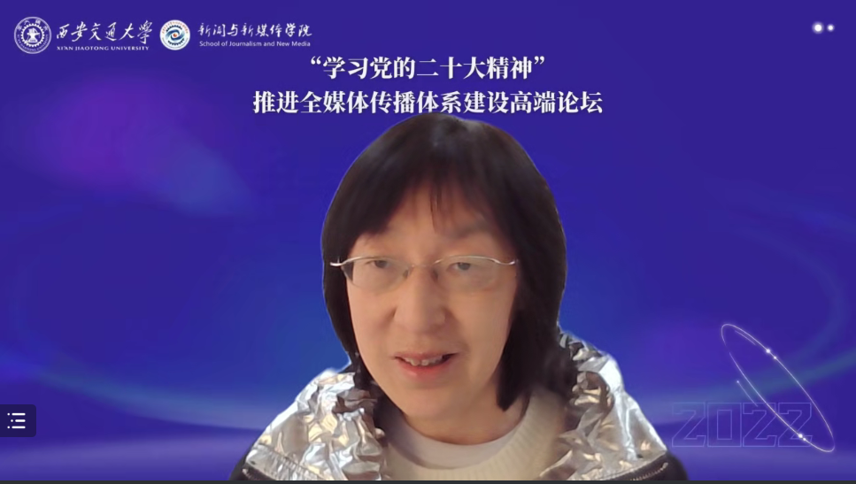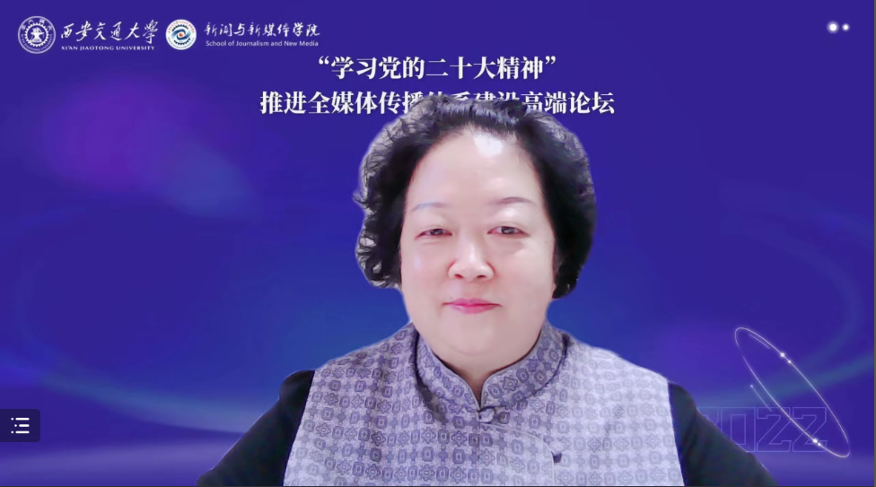 北京大学国家战略传播研究院院长、北京大学新闻学研究会执行会长,程曼丽教授发表了题为《全媒体传播体系建设的系统观》的演讲。她谈到,党的十八大以来,习近平总书记就“坚持系统观念”作出一系列重要论述,总书记强调要“为前瞻性思考、全局性谋划、整体性推进党和国家各项事业提供科学思想方法”。当前我国面临的复杂多变的国际舆论环境,需要坚持系统观念,需要立足“中华民族伟大复兴的战略全局”和“百年未有之大变局”,统筹考虑全媒体体系的未来建设路径。全媒体体系建设需要以推进中华民族伟大复兴为使命任务、以弘扬中华文化为主要传播内容、以应对世界百年未有之大变局为传播策略、以先进的传播技术为支撑、以创新作为驱动力。要把握好系统观念的科学内涵和实践要求,使全媒体传播体系建设更好服务于国家建设全局。