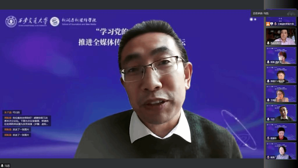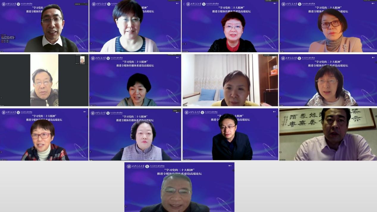 学报(社会科学版)》编辑部共同协办的“‘学习党的二十大精神’推进全媒体传播体系建设高端论坛”院长论坛(二)在西安举办。院长论坛二汇聚11位学界重要新闻传播学院院长、国内知名专家学者,齐聚云端、线下,通过多媒体手段相聚交大,共话全媒体传播体系建设的未来进路。会议聚焦全媒体传播体系建设与中国式现代化的关联体系、全媒体传播体系建设与乡村振兴、全媒体传播体系建设与特色人才培养等多个方面展开学术研讨与思想碰撞。会议吸引了全国百余专家学者、新传学子百余人参会。