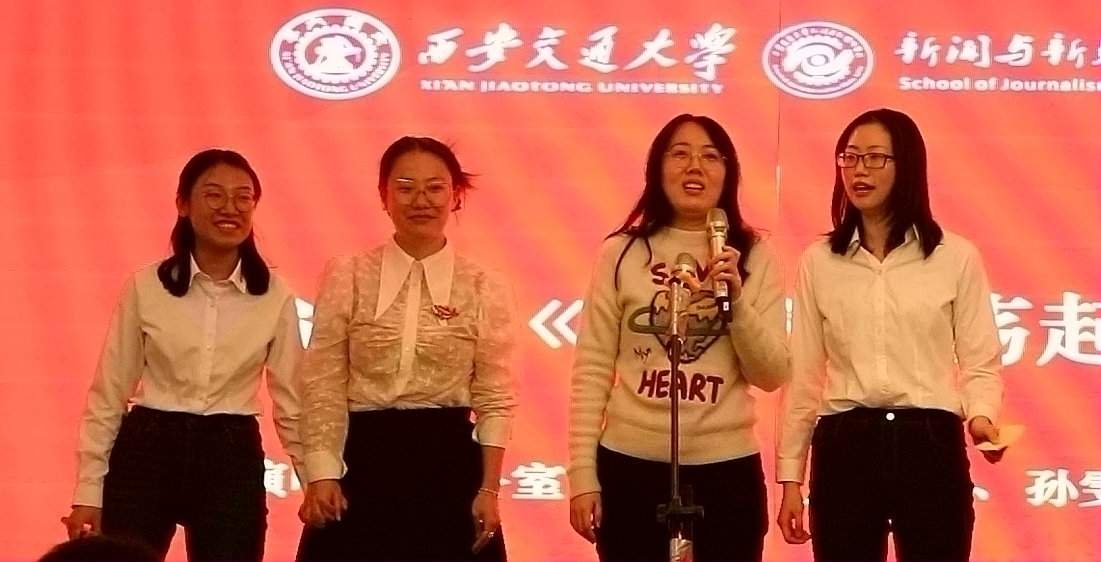 随之而来的是学院办公室马樱支、卢静怡、孙雯、孙艳婷老师带来的小合唱《让我们荡起双桨》,一首耳熟能详的童年歌曲引得大家纷纷跟唱,频频互动。