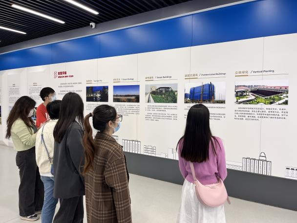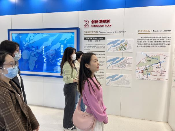 数字展厅对中国西部科技创新港“一廊三核四绿楔五板块”的建设规划进行了多角度、全方位的展示。同学们通过参观了解到创新港的战略意义——向东面向京津冀、长三角、粤港澳大湾区,向西则位于丝绸之路起点之上,如同大国心脏。依托于“一个港口,两个理念,三位一体”的建设思路,结合5G等先进技术,创新港致力于打造一个集教育、科研、创业、生活为一体的“智慧学镇”,建设一所开放、包容的没有围墙的大学。此外,创新港扎根西部,在科技成果“产学研用”进程中发挥着巨大的作用。创新港面向国家社会的重大需求,在理、工、医、文四大方向建立了八大平台、29个研究院和300多个科研平台,打通科技成果转移转化的“最后一公里”,让更多科技成果能够转化为现实的生产力。