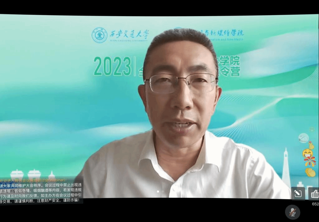 马忠院长首先代表学院诚挚欢迎各位营员参加此次夏令营,并从学院的两个“新”字入手,畅谈在新时代、新征程、新赛道背景之下,学院取得的新发展与新成果。同时,马院长详细介绍了学院“数字新闻学、计算传播、媒介化治理、区域国际传播”四个研究方向,突出了学院交叉学科与工字牌发展特色,希望学院的优秀成果能够为各位学员留下美好回忆。
