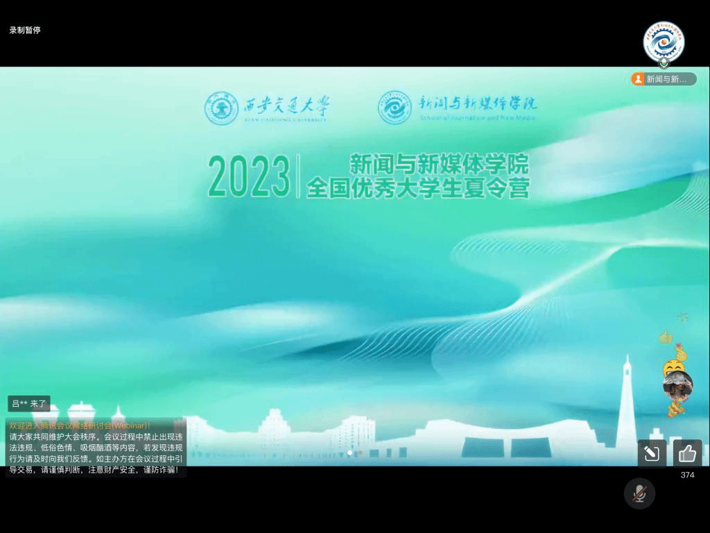 至此,为期两天半的线上夏令营活动圆满结束。本次短暂相聚不仅让营员们深入感受了笃实厚重的交大底蕴和学院强劲的发展势头,学院也感受到了营员们的优秀才能与青春风采。此次夏令营的成功举办增进了全国各地优秀大学生对黑料网