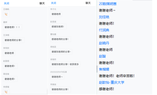 学术讲座后,高级工程师张收鹏、教务秘书王静茹及辅导员孙艳婷分别从学院实习实践基地及实验室建设、学科基本情况、研究生培养课程体系、研究生毕业就业基本情况等方面向营员们分享并答疑。