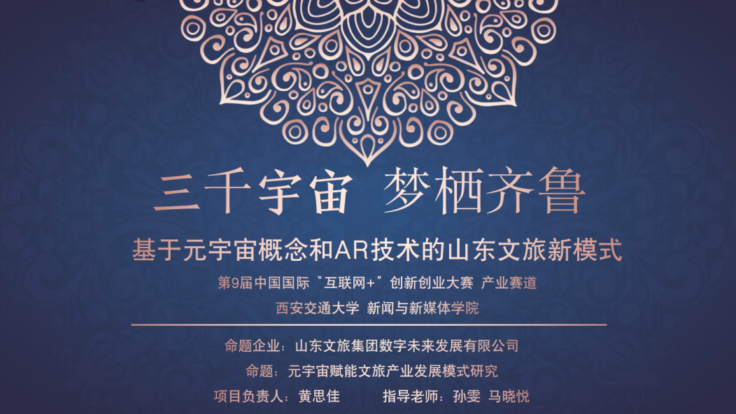基于当前时代需求、国家战略及行业观察,黄思佳团队围绕“元宇宙赋能文旅产业发展模式研究”的命题,提出“基于元宇宙概念和AR技术的山东文旅新模式”的对策方案获得了产业赛道省赛铜奖。