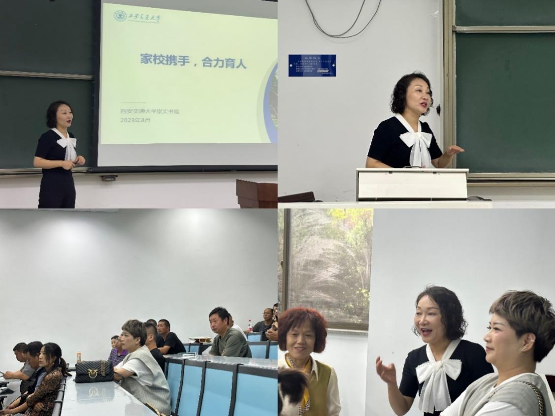接下来,崇实书院院务副主任王美玲从为什么、是什么等五个深入浅出的层面对书院特色、育人目标、育人成果等方面做出了介绍,向家长倡议通过家校共育促进学生全方面发展,以理解和真诚帮助孩子在大学期间健康成长。