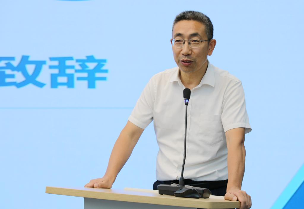 ”命名之源切入,指出学院发展是立足于新媒体技术浪潮之上,融合多种交叉学科优势是学院的特色所在,并勉励同学们以学院平台为基点,抢抓发展机遇,做新时代的拓荒者,期望同学们能够目标明确、具备创新思维,做合格的新媒体人才。随后他结合学院建设目标,向同学们提出几点建议,一是“要以打造产品为导向,打好学院工字牌,积极参与到制作新闻传播专业相关的作品中,到有炮声的地方去战斗”;二是“要走出课本,在实践中练就真本领,切忌纸上谈兵,提升自身专业性”;三是“要鼓励大家从细微处做起,转化思维,落到具体实事,厚积薄发”。最后,他希望大家能够独立思考,保持健康体魄,以“拓荒者”的精神要求自己,以轻松心态迎接即将到来的交大学习新生活。