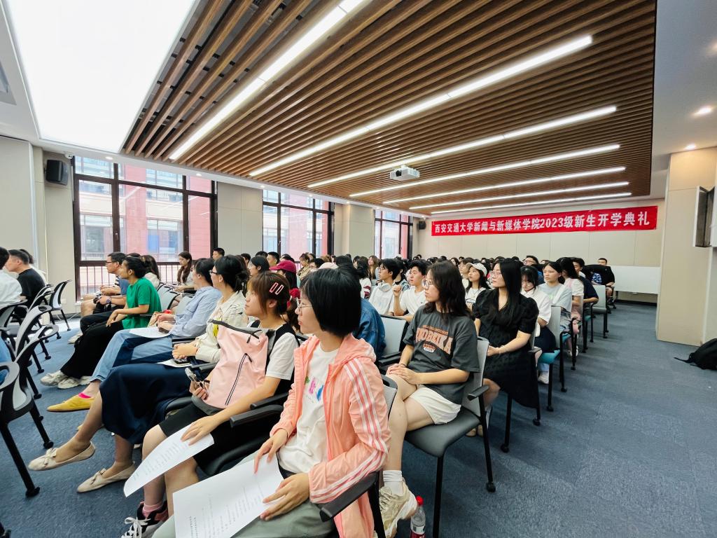 院长兼党总支书记马忠、党总支副书记吴锋、院长助理、院办主任范晓莹、新闻系主任蒙胜军、传播系主任陈强、新媒体系党支部副书记杨帆、党总支秘书卢静怡、本科生教学秘书马樱支、研究生教学秘书王静茹、实验技术教师张收鹏、研究生辅导员李媛媛以及全体2023级本科生、研究生、博士生新生参加了本次典礼。典礼由吴锋副书记主持。