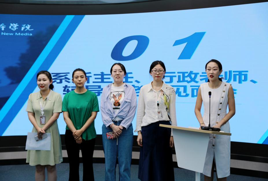 范晓莹带领学院党政办公室成员依次自我介绍,每位老师将自己分管的行政工作向同学们做了详细说明,希望同学们在今后的生活、学习中遇到困难时能第一时间想到学院,师生同向同行,推动学院高质量发展。