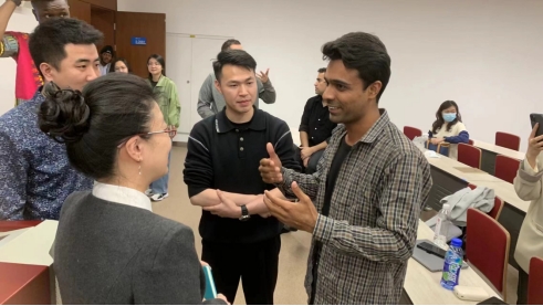 S3216班班长马研宇从ChatGPT等AI快速发展是否会对短视频行业造成冲击?自媒体账号在没有MCN机构投流加持的情况下是否难以出圈?以及视频流量在多大程度上会受到算法推荐的影响等方面向嘉宾进行提问;部分国际留学生则从如何在中国建立自己的个人账号、如何在自己国家运营短视频账号等方面积极提问并探讨,发言人针对现场问题从专业的角度进行了细致的解答。