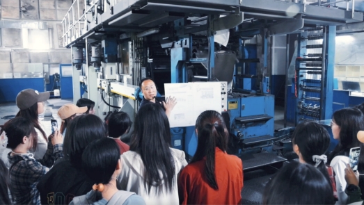 作为陕西具有影响力的媒体,陕西日报始终坚持听党指挥跟党走,紧跟国家发展战略,响应习近平总书记提出的新质生产力,引进高端自动化设备,由传统印刷逐步转型升级为数码印刷,高质量完成党报党刊的发行工作。参观过程中,相关负责人通过带领大家参观生产设备,介绍了刊物印刷、装订、裁剪再到包装的全过程,分享了每日发行的报纸从记者、编辑、印刷工人、分发工人最后到民众手中的全流程。同学们认真倾听负责人的介绍,过程中仔细了解学习学科知识,认真记录。陕西日报内容生产严谨的程序与过硬的生产质量也使同学们对行业有了具象化的认知,提升了作为新闻工作者的职业素养。
