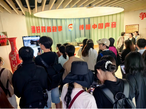 随后,师生一行前往群众新闻网参观学习。群众新闻网是陕西日报为进一步组织、宣传、凝聚、服务群众,不断提升新闻舆论四力:传播力、引导力、影响力、公信力而打造的新媒体平台。相关工作人员带领师生们观看了群众新闻网的宣传视频及由其视听中心所打造的两款原创新媒体新闻产品,简要介绍了群众新闻网的发展历程与方向。师生们还进一步了解并参与了新闻编辑、产品设计、主播拍摄等实践过程,群众新闻网的工作人员严谨、细致的工作态度及产出的精致、有趣的新闻产品也让同学们对新闻工作者“脚力、脑力、笔力、眼力”四力有了更加生动的体会,激发同学们勇担历史使命、当好新时代新闻工作者的志向。