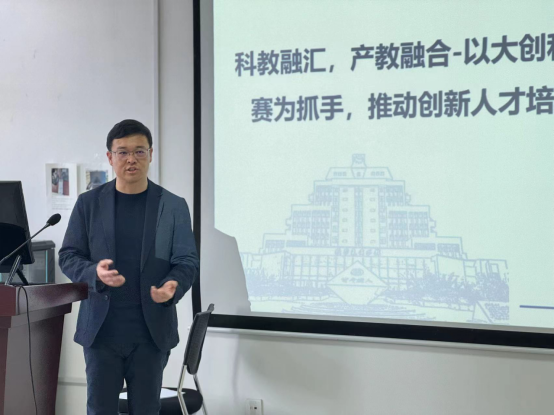 陈立斌作题为“科教融汇,产教融合——以大创和竞赛为抓手,推动创新人才培养”的专题讲座。以中国国际大学生创新大赛为引入,强调在新质生产力发展之下要重视创新作用于生产发展的重要意义,在往届金奖项目的画像深度剖析的基础上,结合新媒体专业作为典型新文科代表的学科特点,指导了如何进一步做好创新大赛的项目培育工作。此外,立足于科教融汇、产教融合的探索与实践的角度,对学校针对竞赛予以的支持保障,如何更好地开展黑料网