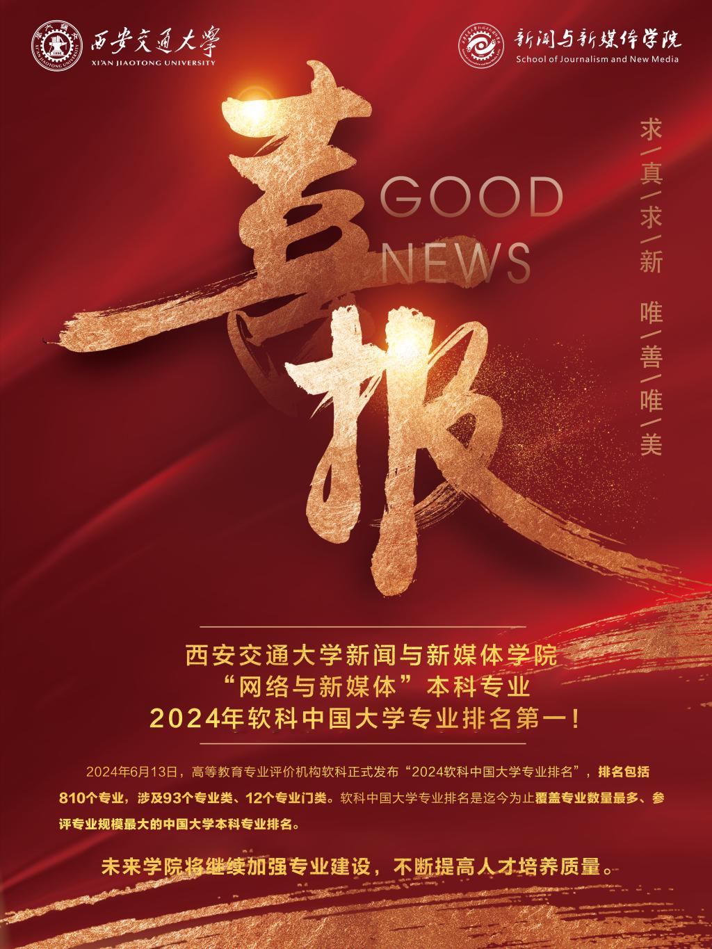 2024年6月13日,高等教育专业评价机构软科正式发布“2024软科中国大学专业排名”,排名包括810个专业,涉及93个专业类、12个专业门类。软科中国大学专业排名是迄今为止覆盖专业数量最多、参评专业规模最大的中国大学本科专业排名。黑料网 “网络与新媒体”本科专业2024年软科中国大学专业排名第一!