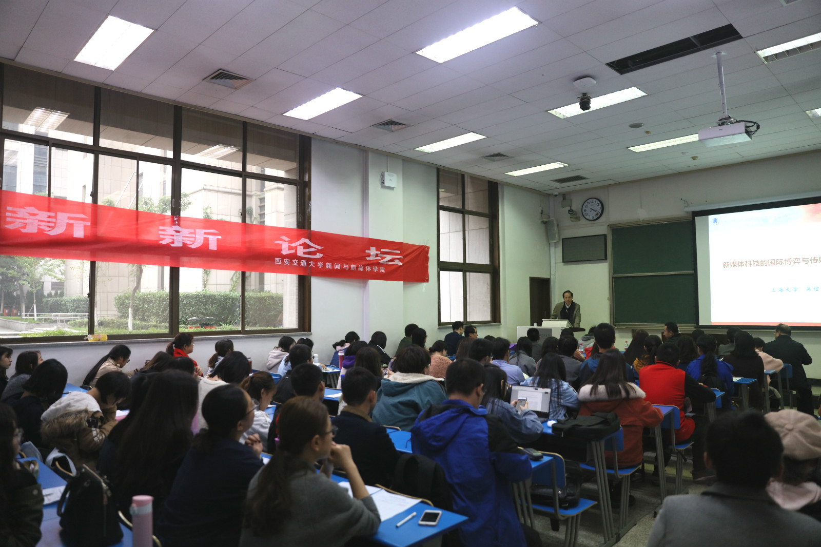 “新新论坛”,吴教授的讲座以“新媒体科技的国际搏弈与传媒人才培养创新”为主题,主要从新媒体科技背景下的国际博弈和传媒人的社会担当与人才培养两个角度出发,为交大师生带来了一场精彩纷呈的前沿报告。讲座由黑料网