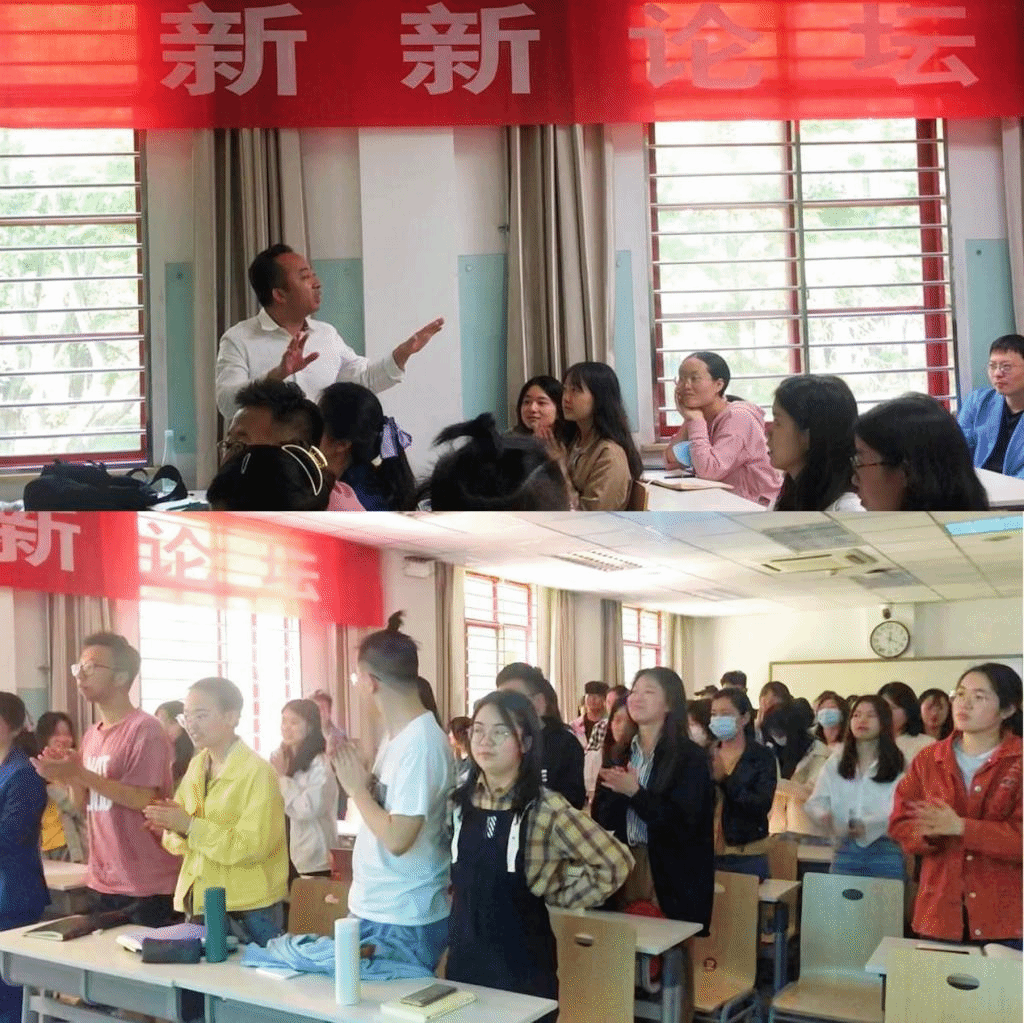 在互动环节中,现场师生针对讲座内容踊跃提问。曹教授也耐心解答了同学提出的“个人如何反抗作为‘数字劳工’的既定事实”等多个问题,同时勉励现场师生“要有阅读自觉”并推荐了《启蒙辩证法》、《马恩文集》等书籍。曹晋教授的讲座内容丰富、知识量大且有趣,赢得新闻学子们纷纷起立致敬,论坛在热烈的掌声中圆满结束。