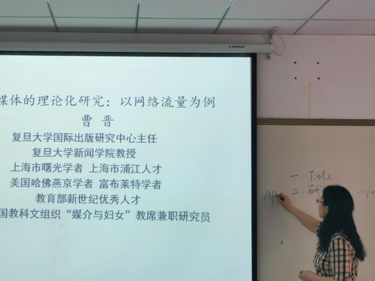 随后,曹教授结合自身学术研究过程,就本科生、硕士生及博士生毕业论文的研究方向、题目拟定、文献综述、研究方法等方面进行了整体指导。曹教授表示对当下最新的研究热点进行剖析是非常有必要的,否则就容易与社会脱节。不仅如此,作为新闻学子还应该在选题中饱含对社会生活的体验与洞察;在撰写题目方面,曹教授指出与相对宽泛的题目相比,有明确限定的具体题目更易被采纳;谈到文献综述时,曹教授认为当前大多数学生文献综述能力欠缺的主要原因在于并未建立所研究领域所需的理论体系。除此之外,曹教授还介绍了质性研究中必不可少的网络民族志研究方法,并呼吁现场师生在撰写论文时不仅要从整体上对研究事物进行描述性分析,更应重视事物发展的内在机理。